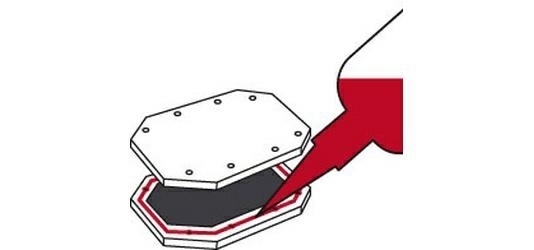 9822MAnaerobowa płynna uszczelka, idealna do łączeniapłaskich szlifowanych powierzchni metalowych.Polimeryzuje w kontakcie ze szlifowanymi częściamimetalowymi przy nieobecności tlenu.Zapobiega luzowaniu połączeń śrubowych i szpilek.Wysoka odporność chemiczna i termiczna(oleje, woda, benzyna, itd.).Idealna do części poddawanych okresowej konserwacji.Pozwala na demontaż przy użyciu narzędzi ręcznych.Zakres temperatur (°C) -50 ÷ +150Szczelina maksymalna (mm) 0,35Czas wiązania (minuty) 10-15Utwardzenie funkcjonalne (godz.) 3 ÷ 6Lepkość (mPs.s) 25°C 40 000/70 000Moment obrotowy zrywający ISO-10964 (Nm) 25 ÷ 35Moment obrotowy przy dalszym odkręcaniu ISO-10964 (Nm) 20 ÷ 30