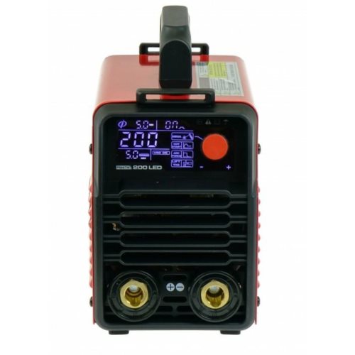 Spawarka inwertorowa do spawania metodą MMA elektrodą otuloną prądem stałym (DC). Zasilanie 230V, prąd spawania 200A.