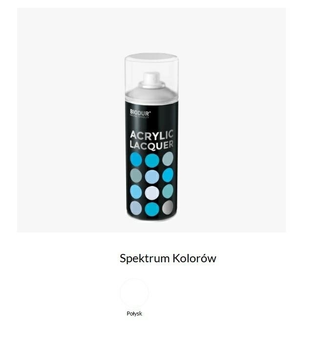 Lakier akrylowy bezbarwny 400mlSzybkoschnący bezbarwny lakier akrylowy. Stosowany do ochrony powłok malarskich przed działaniem mechanicznym i warunkami atmosferycznymi. Nakładany jako warstwa wykończeniowa lub samodzielnie. Tworzy mocną, przezroczystą, błyszczącą powłokę. Unikalną właściwością lakieru jest wzbogacanie każdego koloru. Nie blaknie pod wpływem promieni słonecznych i pozostaje błyszczący.Doskonała przyczepnośćGładka powierzchniaSzybkoschnącyOdporna na warunki atmosferyczneOdporna na promieniowanie UVDo użytku zewnętrznego i wewnętrznego
