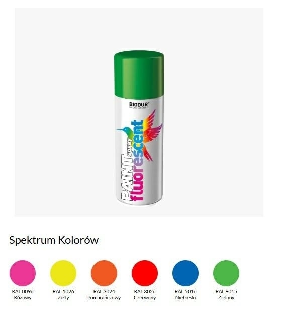Szybkoschnąca farba akrylowa o wysokiej zawartości pigmentu fluorescencyjnego. Tworzy mocną, jasną powłokę. Odporna na działanie mechaniczne i warunki atmosferyczne. Nie blaknie pod wpływem promieni słonecznych.Jasny efekt fluorescencyjny (neonowy)Wymagany biały podkład lub biała powierzchniaDoskonałe pokrycieSzybkoschnącaOdporna na warunki atmosferyczneOgraniczona odporność na światło i promieniowanie UV.Aby chronić efekt fluorescencyjny, zaleca się nałożyć lakier bezbarwny jako warstwę wykończeniową po 30 minutachNadaje się do różnych powierzchniDo użytku zewnętrznego i wewnętrznego