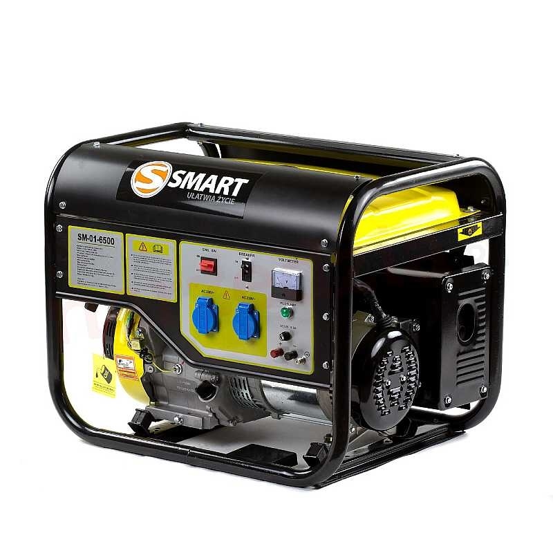 Dane techniczne: Moc znamionowa: 5,0KW Napięcie: 230V Gniazdo wyjściowe: 12V Częstotliwość (Hz): 50 Wymiary dł.x szer. x wys.: 695x525x545mm Masa: 82kg Moc silnika: 13KM Rodzaj paliwa: benzyna bezołowiowa Pojemność zbiornika: 25l Pojemność miski olejowej: 1,1l Rozruch: rewersyjny z linką 2 x gniazdo 16 A 1-fazowe