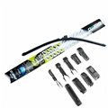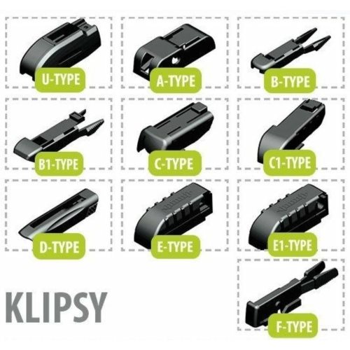 Wycieraczka płaska OXIMO Aero WU doskonałe dopasowanie do szyby samochodu mieszanka najwyższej jakości naturalnego kauczuku pokryta warstwą silikonuszybki i łatwy montaż brak elementów metalowych, nie ma możliwości porysowania szyby zwiększona odporność na warunki atmosfertyczne.10 typów mocowań: U-Type, A-Type, A1-Type, B-Type, B1-Type, C-Type, C1-Type, D-Type, E-Type, E1-Type, F-Type Pióra bez konstrukcji szkieletowej ze zintegrowanym spoilerem, unikatową mieszanką silikonowo-kauczukową, mocowanie zaczepu pod osłoną wykonane jest w całości z metalu. Części metalowe zostały wykonane z wytrzymałej stali typu High-Carbon w całości ocynkowanej aby długo i skutecznie chronić przed korozją.