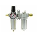 2-stopniowy filtr powietrza / regulator / odwadniacz / naolejacz. Zestaw ten ma za zadanie oczyścić powietrze dopływowe z większości płynnych i stałych cząstek. Smarownica zapewnia prawidłowe smarowanie narzędzi w celu uzyskania optymalnej wydajności i ochrony. Regulator ciśnienia służy do regulacji ciśnienia powietrza wylotowego w zakresie od 0 do 150 psi.Cechy produktu Ciśnienie maksymalne: 1.0 MPa (150 psi) Temperatura pracy: do 60°C Materiał: Policarbon Gwint wewnętrzny: 1/2" W zestawie szybkozłączka męska i żeńska na gwint 1/2"