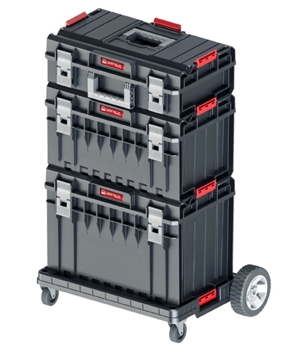 Pojemniki wielofunkcyjne, Regulowane przegrody, Solidne zapięcia, Mocne rączki, Uszczelka w pokrywie, Odporność na pył i wodę, Modularna konstrukcja, Żebra wzmacniające