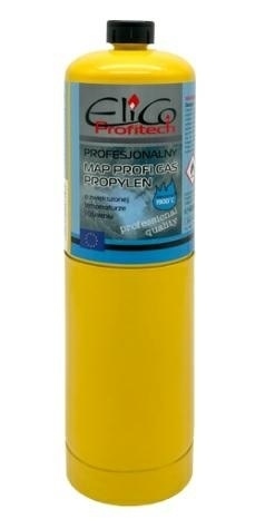 Profesjonalny gaz MAP PROFI GAS PROPYLEN 400gPracuj szybciej i wydajniej przy wyższej temperaturze spalania niż standardowy gaz propan. Cylinder zawiera paliwo najwyższej jakości przeznaczone do lutowania dużych rur miedzianych, lutowania twardego i obróbki cieplej. Smukły cylinder, zbudowany z wytrzymałej stali jest łatwy do uchwycenia i manewrowania.Temperatura płomienia w powietrzu wynosi 1900°CPoza zastosowaniami przemysłowymi gaz Elico Profitech jest doskonały do gotowania, grillowania, podgrzewania.Czystość gazu to 99,9% – praktycznie nie posiada żadnych innych substancji chemicznych.Nie pozostawia zapachu i innych produktów ubocznych procesu spalania.Szybszy transfer ciepła niż w przypadku paliwa propanowego. Należy stosować z palnikami Elico Profitech i innymi palnikami przystosowanymi do gazu typy MAPP.
