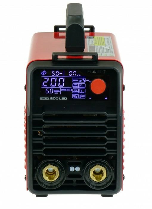 Spawarka inwertorowa do spawania metodą MMA elektrodą otuloną prądem stałym (DC). Zasilanie 230V, prąd spawania 200A.