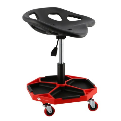 Profesjonalne krzesło warsztatowe na kółkach z wyprofilowanym siedziskiem poliuretanowym. Ergonomiczne krzesło robocze zapewnia wygodną i stabilną pozycję podczas pracy, a regulowana wysokość w zakresie 400 - 540 mm umożliwia dopasowanie do różnych stanowisk. Solidna stalowa konstrukcja z udźwigiem do 135 kg oraz cztery obrotowe kółka gwarantują trwałość i mobilność w codziennym użytkowaniu. To niezawodne krzesło przemysłowe i funkcjonalny stołek warsztatowy w jednym. Idealny do profesjonalnych zastosowań w warsztatach i zakładach produkcyjnych.